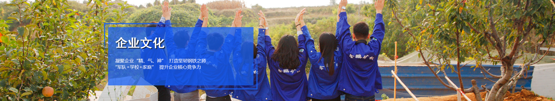 金鵬人身上都有一種韌勁,這來源于領(lǐng)導(dǎo)人于建環(huán)女士的個人領(lǐng)導(dǎo)力,更來源于這個企業(yè)獨特的魅力。 在夯實礦業(yè)一條龍服務(wù)的基礎(chǔ)上,金鵬打造了一支“召之即來、來者能戰(zhàn)、 戰(zhàn)者必勝”的鋼鐵之師。金鵬集團十年的快速發(fā)展,離不開這個企業(yè)的“獨特”企業(yè)文化——“軍隊+學(xué)校+家庭”。